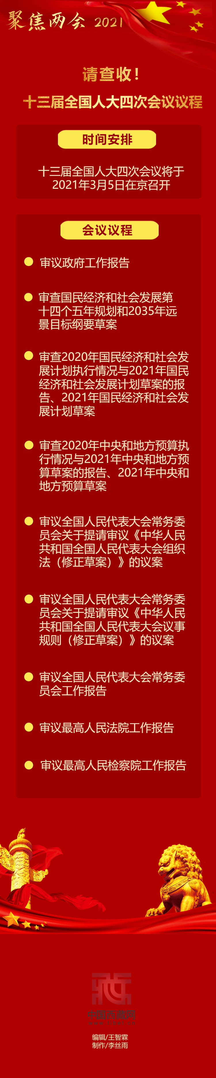 【聚焦兩會 2021】請查收!十三屆全國人大四次會議議程