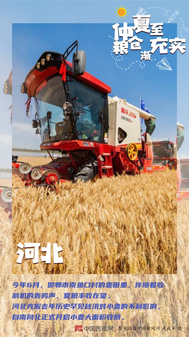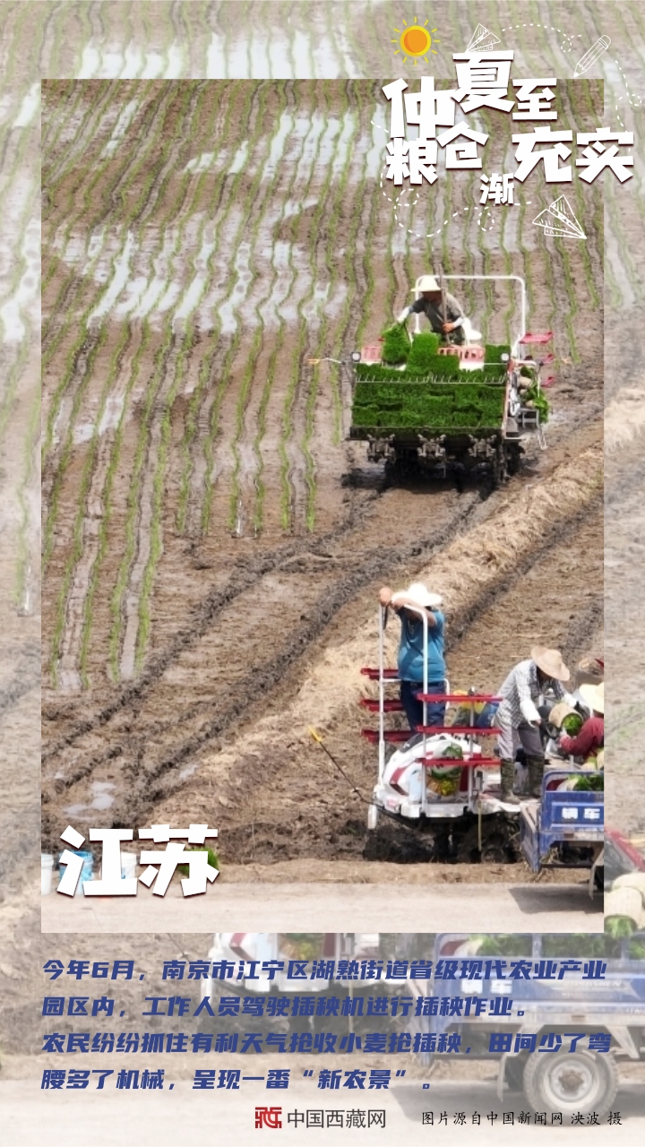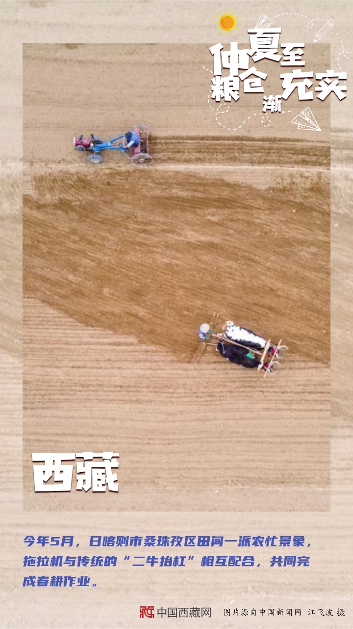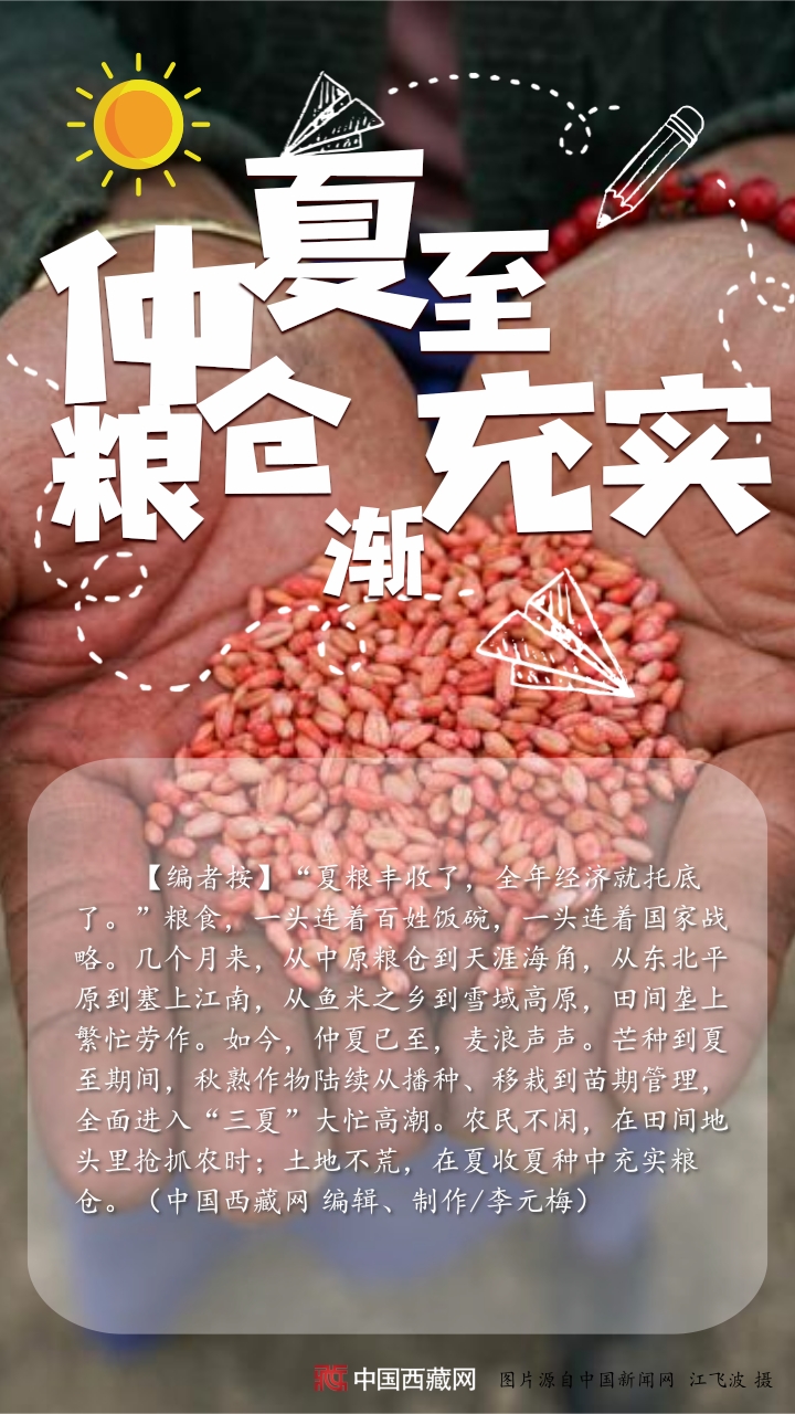 【編者按】“夏糧豐收了,全年經(jīng)濟(jì)就托底了?!奔Z食,一頭連著百姓飯碗,一頭連著國(guó)家戰(zhàn)略。幾個(gè)月來,從中原糧倉到天涯海角,從東北平原到塞上江南,從魚米之鄉(xiāng)到雪域高原,田間壟上繁忙勞作。如今,仲夏已至,麥浪聲聲。芒種到夏至期間,秋熟作物陸續(xù)從播種、移栽到苗期管理,全面進(jìn)入“三夏”大忙高潮。農(nóng)民不閑,在田間地頭里搶抓農(nóng)時(shí);土地不荒,在夏收夏種中充實(shí)糧倉。(中國(guó)西藏網(wǎng) 編輯、制作/李元梅)