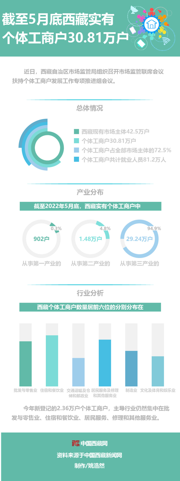 圖解|截至5月底西藏實有個體工商戶30.81萬戶