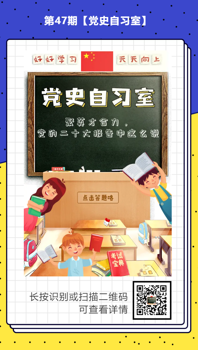 第四十七期【黨史自習(xí)室】 聚英才合力,黨的二十大報告中這么說