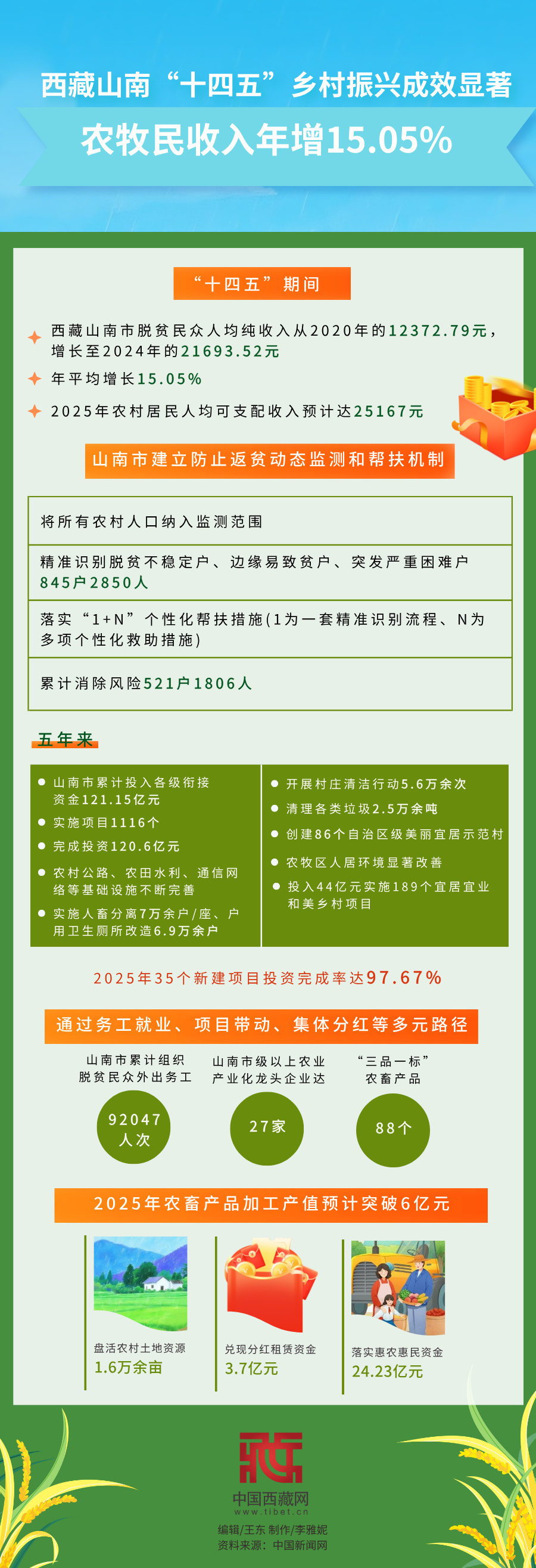 海報(bào)|西藏山南“十四五”鄉(xiāng)村振興成效顯著 農(nóng)牧民收入年增15.05%