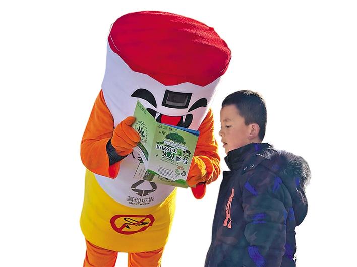 “垃圾分類你我他 喜迎幸福中國年”主題垃圾分類宣傳活動現(xiàn)場,工作人員向小朋友講解垃圾分類相關(guān)常識。