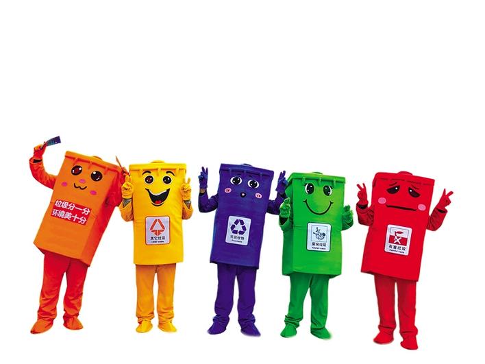 5個宣傳垃圾分類的卡通人偶。本版資料圖片均由記者 央金 攝