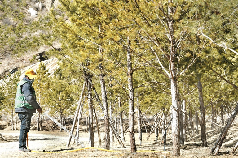 山上有了樹遠(yuǎn)遠(yuǎn)不夠,還要進(jìn)一步提高樹木的成活率,而樹木的成活率離不開后期的管護(hù)工作。因此,每年春天山體解凍后,就要保證每周給樹木澆一次水。另外,由于拉薩紫外線強(qiáng)度大、水分蒸發(fā)量高,有時還需要給樹木輸送營養(yǎng)液……因此,一批批踏著晨露、身披晚霞的樹木養(yǎng)護(hù)工人每天穿梭于山間,檢查樹木的生長情況,進(jìn)行補(bǔ)植補(bǔ)栽、灌溉等工作。拉薩市圣地園林公司相關(guān)負(fù)責(zé)人多布拉告訴記者:“我們從3月8日開始復(fù)工,作為園林工作人員,搶抓季節(jié)很重要,所以我們現(xiàn)在正在進(jìn)行補(bǔ)植補(bǔ)栽?!?/p>
