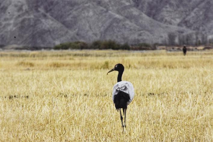 田野里的黑頸鶴。記者 李海霞 攝