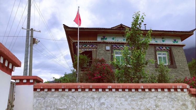 據(jù)色果拉村村支書(shū)介紹,色果拉村居民喜愛(ài)把鮮艷的五星紅旗插在屋頂,以往由于風(fēng)沙大,經(jīng)常把插在屋頂?shù)膰?guó)旗吹歪,于是村民自發(fā)在每家每戶(hù)門(mén)前修建了升旗臺(tái),每到國(guó)慶、“七一”等重大節(jié)日,都會(huì)舉行升旗儀式。另外,村委會(huì)有專(zhuān)門(mén)的舊國(guó)旗回收箱,用來(lái)收納村民家里的舊國(guó)旗,村民上交舊國(guó)旗可以換取新的國(guó)旗。