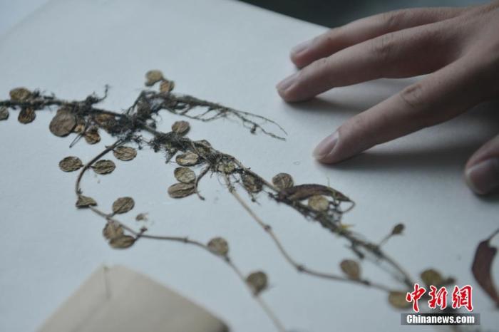 圖為保存于中科院成都生物所標本館里的貝葉芒毛苣苔。中新社記者 張浪 攝