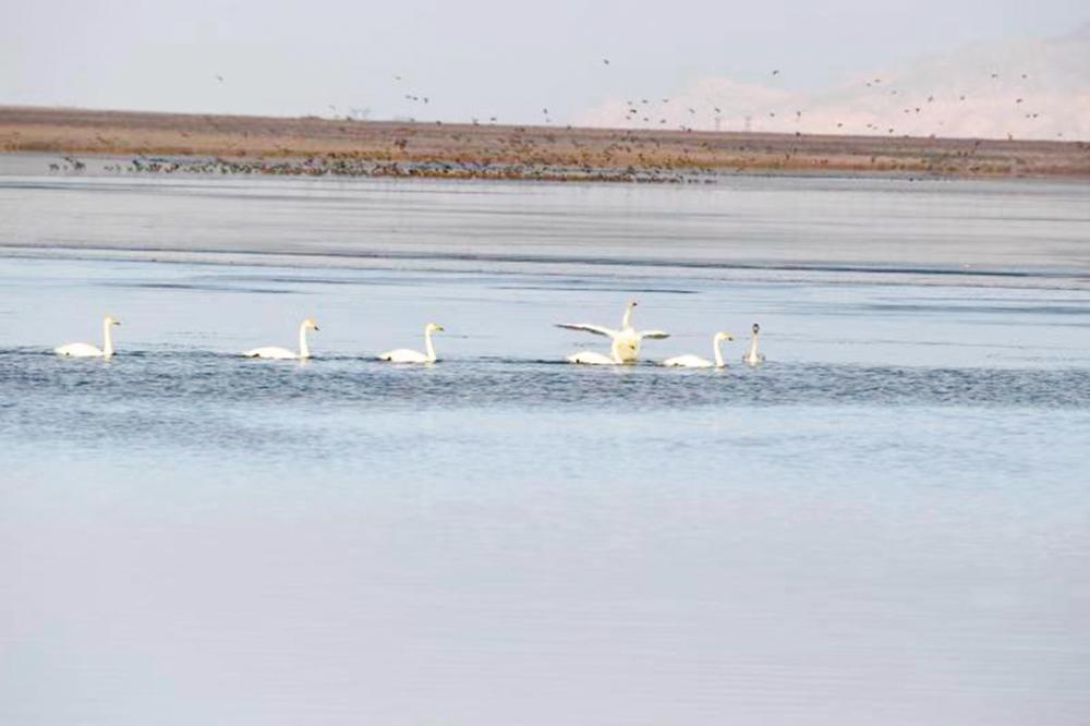 隆冬季節(jié),柴達(dá)木盆地正處在蕭瑟中,然而,位于海西蒙古族藏族自治州烏蘭縣境內(nèi)的都蘭湖國(guó)家濕地公園內(nèi),卻因?yàn)閿?shù)十只大天鵝和萬(wàn)只赤麻鴨、白骨頂雞、棕頭鷗的到來(lái),為冬季的都蘭湖增添了一份美麗與靈動(dòng),呈現(xiàn)了勃勃生機(jī)。