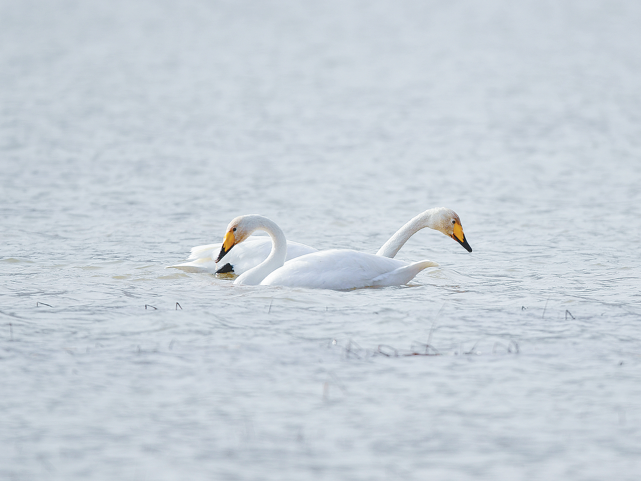 在青海省海東市化隆回族自治縣,天鵝翔集黃河邊,帶來(lái)冬日里的勃勃生機(jī)。
