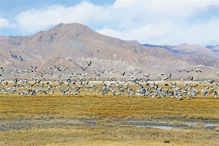 43歲的藏族女巡護員格桑卓瑪,指著不遠處說起了變化:“以前鳥很怕人,數(shù)量也不多,現(xiàn)在,鳥不怕人,以地里青稞穗為食,都到這里來越冬?!?/p>