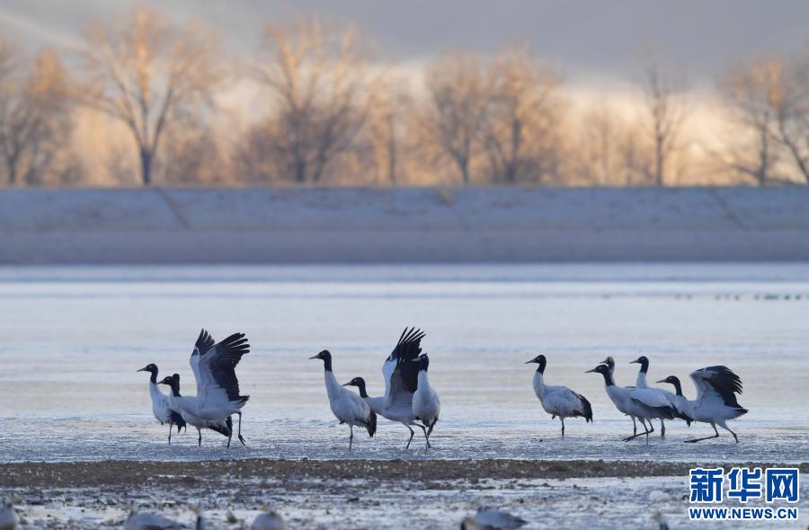 冬日,大批黑頸鶴在西藏拉薩市林周縣境內(nèi)棲息、覓食。 林周縣黑頸鶴自然保護區(qū)建立于1993年,2003年被設立為國家級自然保護區(qū),是雅魯藏布江中游自然保護區(qū)的核心部分,在每年的11月底至12月初,這里便會迎來成群的黑頸鶴過冬。