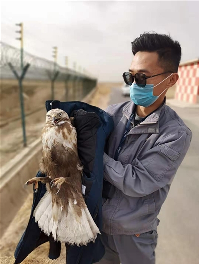 圖為工作人員救助的國(guó)家二級(jí)保護(hù)動(dòng)物大鵟。