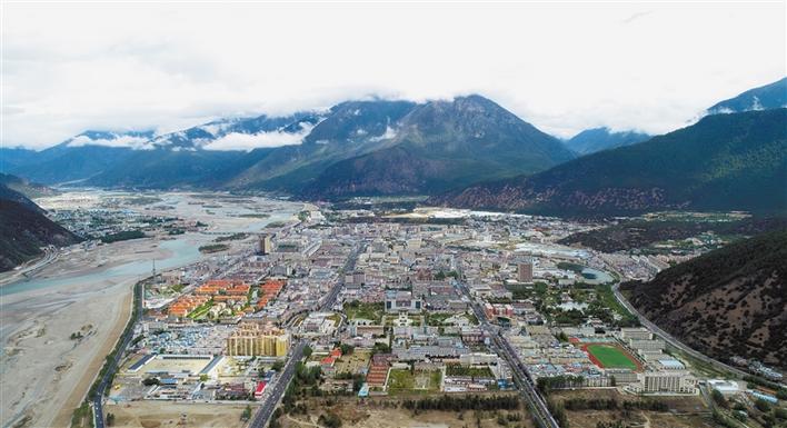 圖為迅速發(fā)展中的林芝城區(qū)。記者 張猛 通訊員 邱金伙 攝