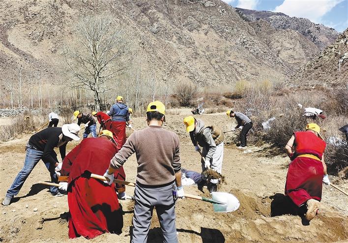日前,加查縣瓊果杰寺管會以“助力春耕生產(chǎn),共建美麗家園”為主題,組織寺管會工作人員和僧人赴加查鎮(zhèn)扎西定崗村與群眾一起進行春耕生產(chǎn)。