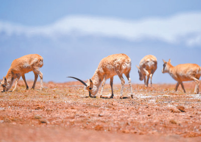 一群藏羚羊在可可西里地區(qū)活動(dòng)。新華社記者 吳 剛攝