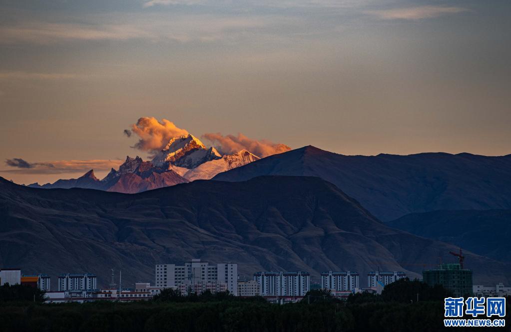 從山南市澤當(dāng)鎮(zhèn)遠(yuǎn)眺雅拉香布雪山(6月2日攝)。新華社記者 普布扎西 攝