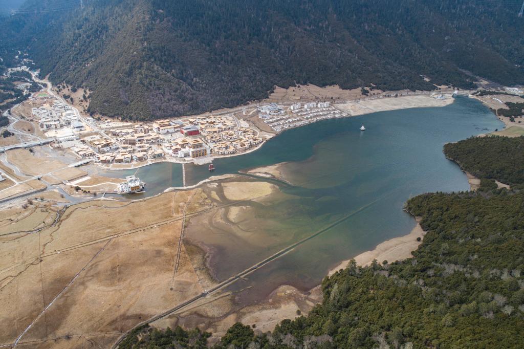 這是川藏公路旁的魯朗國際旅游小鎮(zhèn)(4月2日攝,無人機(jī)照片)。新華社記者 孫非 攝