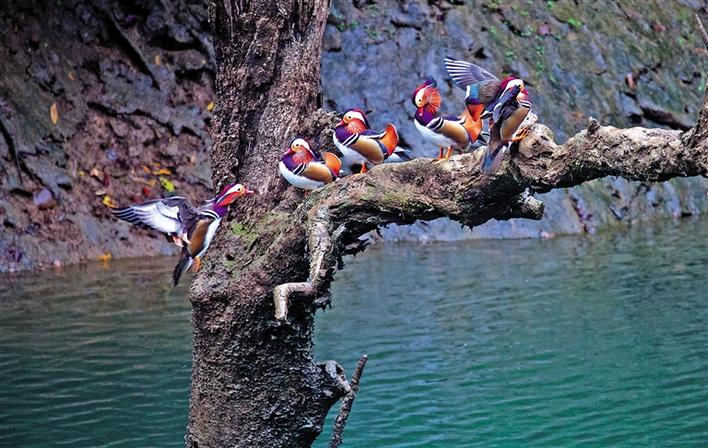 這是在湖南省邵陽市城步苗族自治縣境內(nèi)的南山國家公園體制試點區(qū)拍攝的鴛鴦(2018年10月16日攝)。新華社發(fā) (湖南南山國家公園管理局供圖)