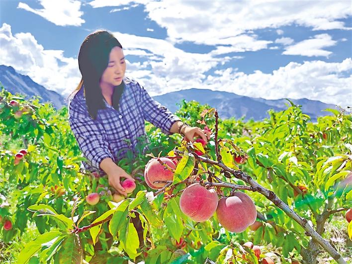 還未走進桃園,桃子特有的清甜香味便撲鼻而來。當(dāng)?shù)毓ぷ魅藛T告訴記者,快熟了的桃子半青半紅,吃起來很美味。在他的指引下,記者摘下一顆白中透粉的桃子,這種已經(jīng)熟透的桃子,桃肉松軟,咬一口,清香又甜蜜的汁水就一涌而出,瞬間征服味蕾。