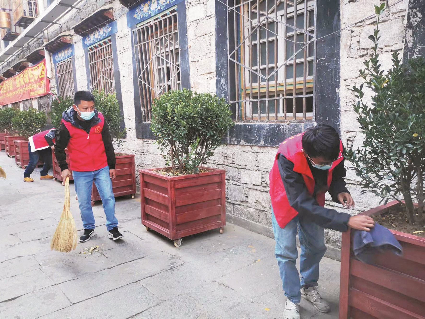 圖為策門林社區(qū)工作人員正在打掃轄區(qū)衛(wèi)生。 拉薩融媒記者 趙 慧攝