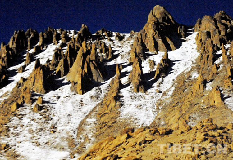 圖為文部辦事處(現(xiàn)尼瑪縣)被當(dāng)?shù)啬撩袢罕姺Q為“一百個(gè)騎兵”的石林山(唐召明1987年攝)
