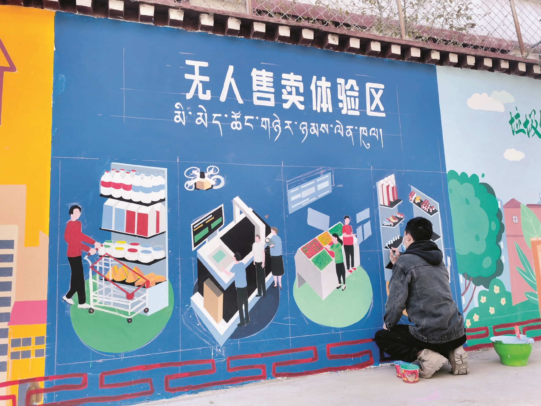 近日,記者在繞賽社區(qū)哈達(dá)巷里看到,有三名工作人員正在給西墻進(jìn)行繪畫(huà)藝術(shù)創(chuàng)作,整體的墻繪已經(jīng)基本形成,正對(duì)一些細(xì)節(jié)進(jìn)行補(bǔ)充,引來(lái)不少過(guò)往群眾圍觀拍照。[詳細(xì)] -