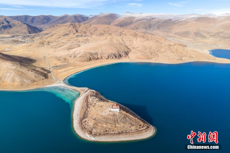 12月28日,羊卓雍錯湖岸風(fēng)光。羊卓雍錯藏語意為“碧玉湖”,與納木錯、瑪旁雍錯并稱西藏三大“圣湖”。羊卓雍錯湖面海拔4441米,東西長130公里,南北寬70公里,湖岸線總長250多公里。28日,中新網(wǎng)記者自駕前往羊卓雍錯,翻過山口,到達湖岸東北面的日托寺,沿途盡是冬日高原湖光山色之美,無人機航拍鏡頭下,遠處雪山、冰川巍峨屹立,堪稱絕美。 江飛波 攝