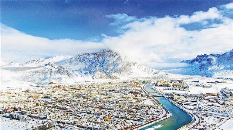 阿里地區(qū)持續(xù)開展河湖“清四亂”專項(xiàng)行動,實(shí)現(xiàn)河暢、水清、岸綠、景美,河湖資源永續(xù)利用。 圖為雪后的獅泉河。 記者 洛桑旦增 攝
