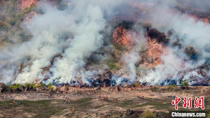 圖為3月2日,云南森林草原火災(zāi)應(yīng)急處置聯(lián)合實(shí)戰(zhàn)演練現(xiàn)場(chǎng)?!≡颇鲜∩窒揽傟?duì) 攝