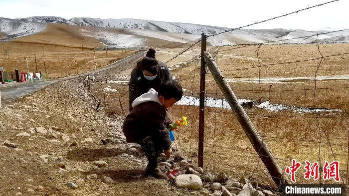 在青海省海北藏族自治州祁連縣青陽(yáng)溝內(nèi),3歲的小扎西轉(zhuǎn)動(dòng)著手中的風(fēng)鈴,跟在母親忠可措身后開始一天的巡山。