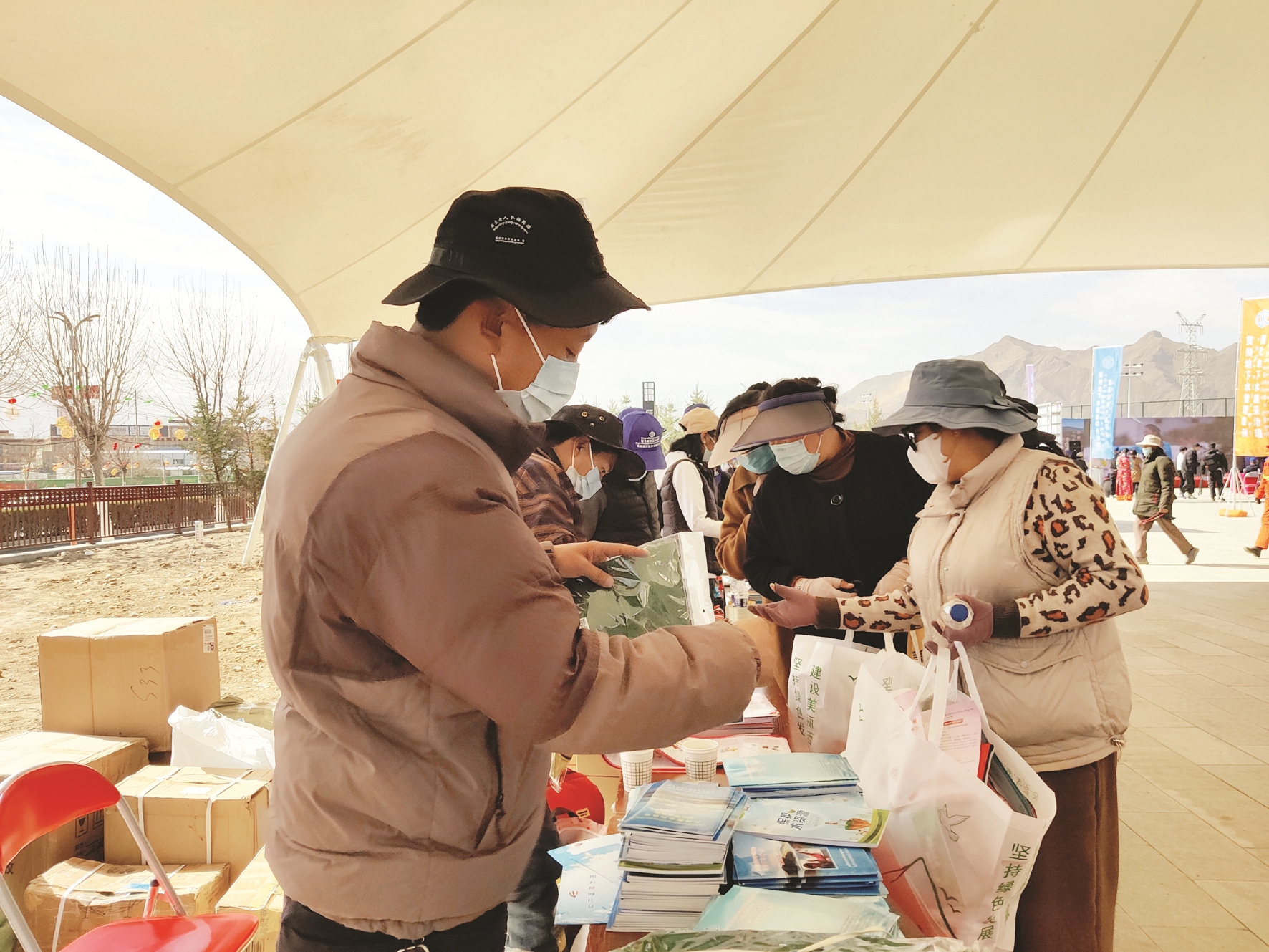 圖為工作人員在為群眾發(fā)放節(jié)水紀(jì)念品和宣傳冊(cè)。 拉薩融媒記者 余洋洋攝
