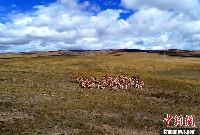 圖為三江源國家公園黃河源園區(qū)內(nèi)的藏野驢群?!‖敹嗫h委宣傳部 供圖