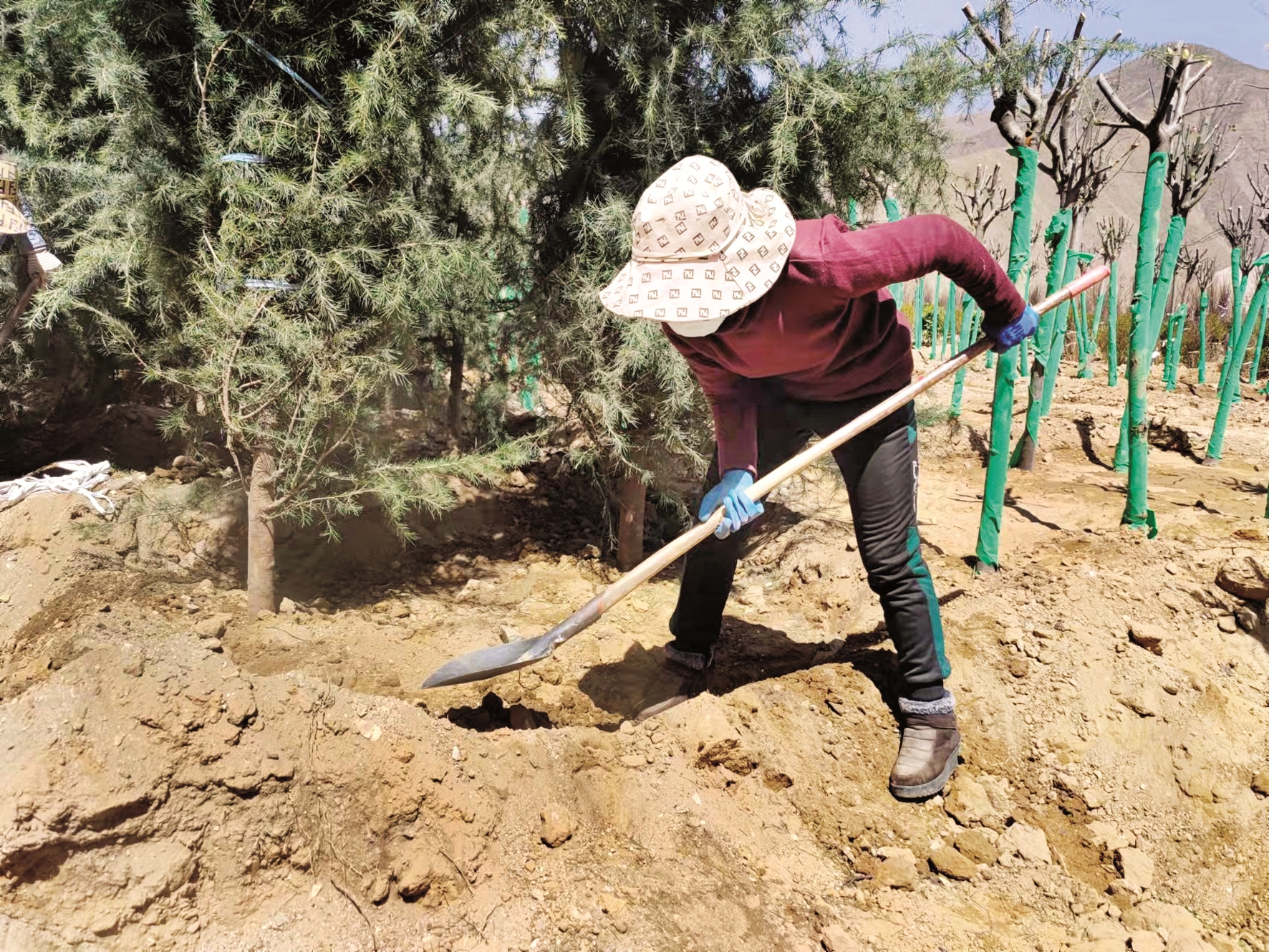 當(dāng)前拉薩天氣晴好,氣溫回升,正是育苗植樹(shù)的好時(shí)節(jié)。扶正樹(shù)苗、填土壓實(shí)……在拉薩市曲水縣茶巴朗村水土保持生態(tài)園里,縣水利局組織附近村民移植培育松樹(shù)、蘋(píng)果樹(shù)、桃樹(shù)等林木,大家三五成群忙得不亦樂(lè)乎。