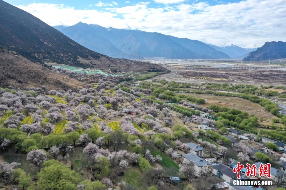 3月30日,桃花盛開(kāi)的林芝市嘎拉村。西藏林芝市嘎拉村被譽(yù)為“林芝桃花第一村”,是林芝市最佳的賞花地之一。(無(wú)人機(jī)照片) 中新社記者 貢嘎來(lái)松 攝