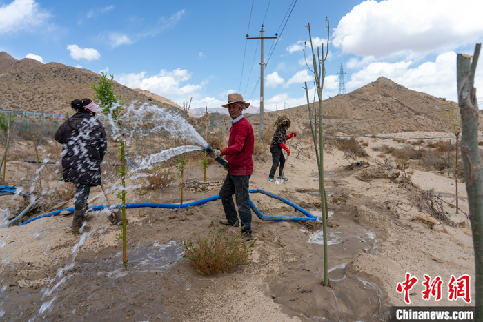 他說,雅魯藏布江兩岸的沙地多是流動(dòng)沙,沙土沒有樹木生長(zhǎng)所需的營(yíng)養(yǎng),種樹前先要填生物肥、秸稈等。此外,樹苗還面臨夏季沙地溫度過高以及水源缺乏等問題?!半m然地處江邊,但種樹點(diǎn)離河道有五六公里甚至更遠(yuǎn)?!泵侠麞|說,他們篩選、馴化本地植物作為種苗,澆灌水源采取就地打井的方式取水,在沙地上植樹造林。