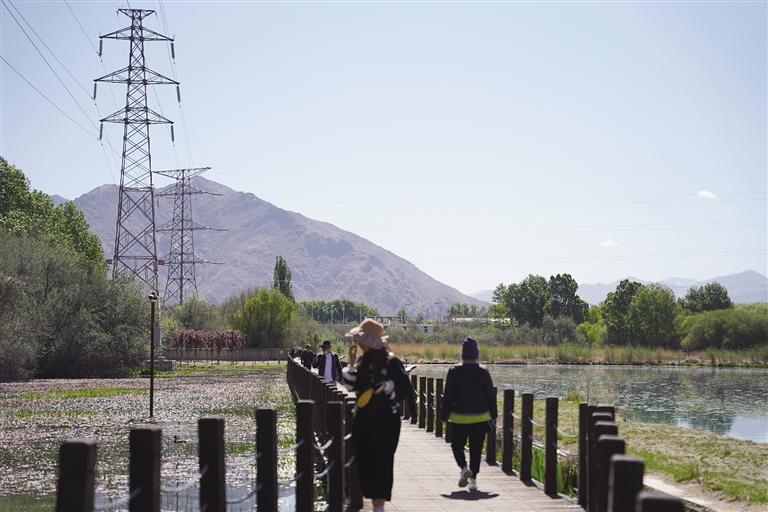“走進(jìn)拉魯濕地,生機(jī)勃勃的盎然綠意、層次分明的景色讓人心曠神怡。遠(yuǎn)處,連綿起伏的山頂還覆蓋著薄薄的積雪,布達(dá)拉宮美輪美奐;近處,濕地內(nèi)的一塊塊水泊,成群的候鳥(niǎo)在水中玩耍嬉戲、在藍(lán)天白云下飛翔。”游客王芳說(shuō),“我和家人剛來(lái)拉薩,聽(tīng)朋友說(shuō)拉魯濕地已經(jīng)開(kāi)放,就想來(lái)打卡,也是第一次來(lái)拉魯濕地,這兒的空氣濕度適宜,在拉魯濕地運(yùn)動(dòng),不僅能享受運(yùn)動(dòng)帶來(lái)的快樂(lè),還能欣賞怡人景色。”