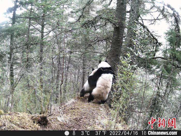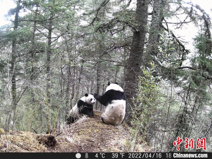 為了打敗競爭者,平時呆頭呆腦、憨態(tài)可掬,有點傻萌的“滾滾”秒變“功夫熊貓”,電光火石的出拳速度和直取要害的攻擊路線,精彩激烈的拳擊、摔跤、柔術(shù)等看家本領(lǐng)統(tǒng)統(tǒng)用上,甚至為了提高自身氣勢,不惜使出“獅吼功”,試圖在氣勢上壓倒競爭對手。而這一切只是為了選擇優(yōu)秀的基因,以利于大熊貓種群在嚴(yán)酷的自然環(huán)境中繁衍生存。此次監(jiān)測視頻中,出現(xiàn)3只大熊貓同框畫面,其中兩只雄性大熊貓因爭奪交配權(quán)出現(xiàn)吼叫、打斗行為;一段視頻中,出現(xiàn)兩只大熊貓“打情罵俏”求偶交配畫面。