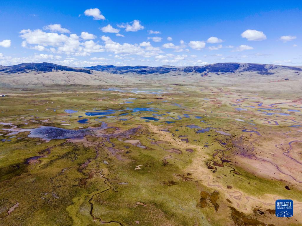 這是5月25日拍攝的拉妥濕地(無人機照片)。新華社記者 周荻瀟 攝