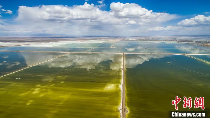 圖為無(wú)人機(jī)航拍察爾汗鹽湖?!『螁⒔?攝