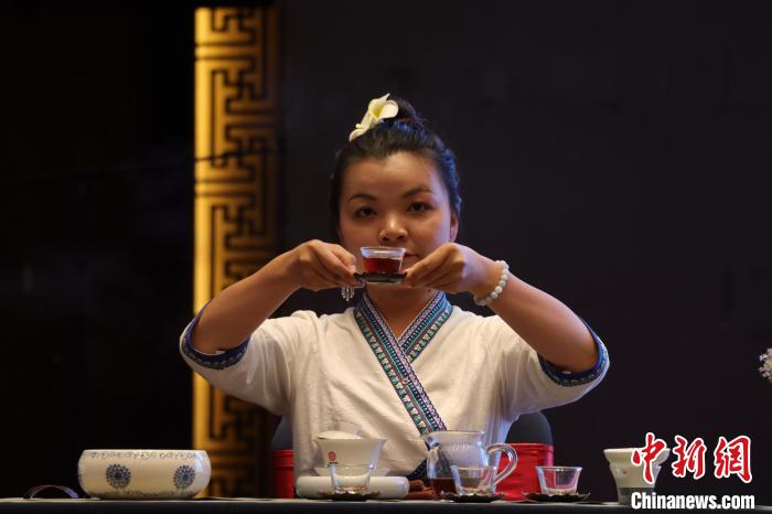 圖為國家高級(jí)茶藝師現(xiàn)場(chǎng)沖泡低氟普洱健康茶?!∶赚敋W珠 攝