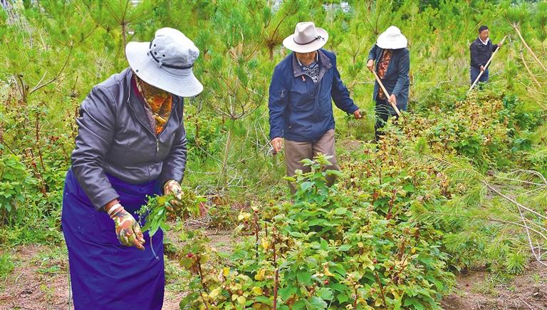 圖為村民在養(yǎng)護(hù)樹(shù)莓。