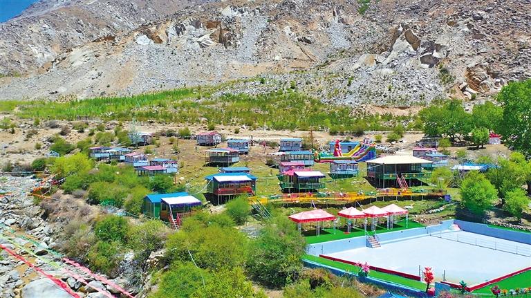 拉薩的夏天,是林卡的季節(jié)。進(jìn)入夏季以來(lái),前來(lái)維巴村林卡游玩的市民絡(luò)繹不絕,一派熱鬧景象。走進(jìn)這些林卡,綠樹(shù)掩映、流水潺潺、鮮花開(kāi)放、溫度宜人,一頂頂帳篷散落在小溪邊更顯詩(shī)意,帳篷旁寬敞干凈的游泳池在陽(yáng)光的照耀下泛著點(diǎn)點(diǎn)金光,人們漫步草地上悠閑地賞景,享受著夏日里的清涼。目前,維巴村共有25家大大小小的林卡,其中不乏網(wǎng)紅林卡,一到節(jié)假日林卡里就會(huì)出現(xiàn)火爆的場(chǎng)面。