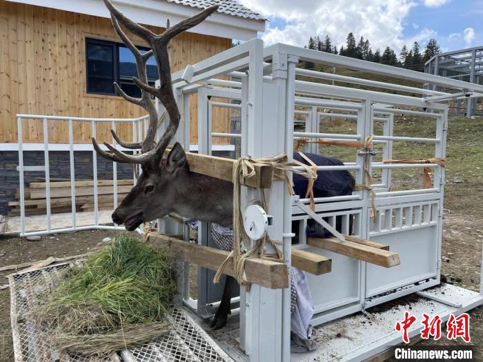 據(jù)現(xiàn)場初步判斷,該馬鹿為雄性個體,12周歲左右,由于秋季下山采食新鮮嫩草,右前肢和鹿角被網(wǎng)圍欄圍困。工作人員隨即將馬鹿麻醉保定后送至祁連山國家公園野生動物救護繁育站,工作人員診斷發(fā)現(xiàn)馬鹿在掙脫過程中右前肢脫臼,無法站立。為避免長期側(cè)躺導(dǎo)致瘤胃發(fā)酵、食欲廢絕,病情進一步惡化,救護繁育站、森林公安干警全體人員將其安置在草食動物保定架,后續(xù)將按照病情體征變化的情況,積極采取有效的醫(yī)療措施,促使恢復(fù)正常。