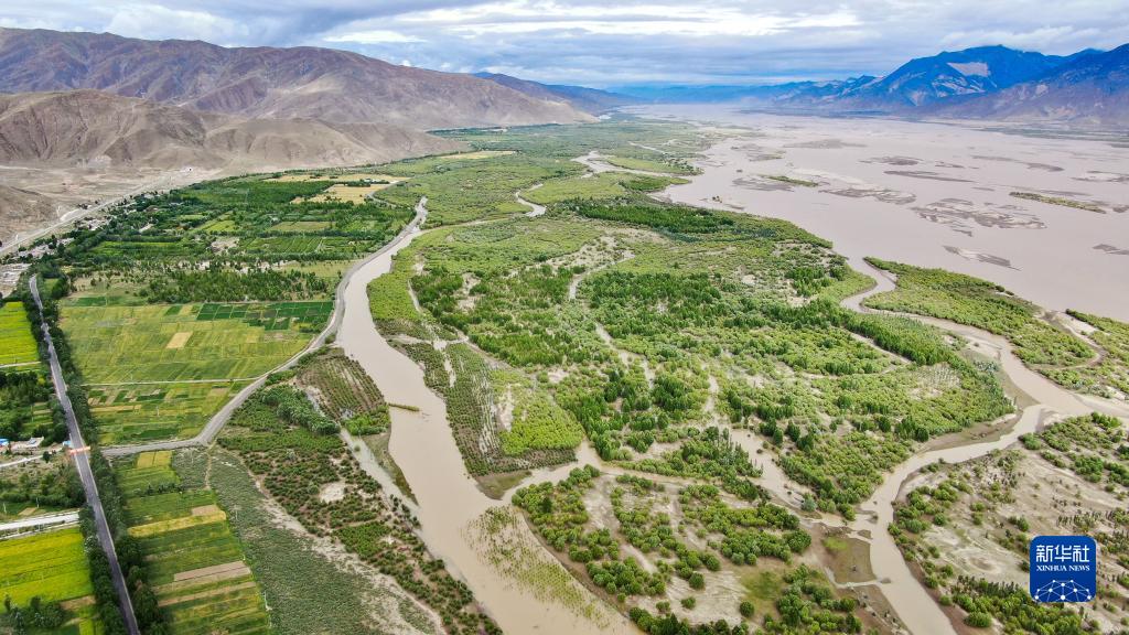 這是雅魯藏布江山南段公路兩旁的綠色長廊(2021年7月20日攝,無人機(jī)照片)。新華社記者 晉美多吉 攝