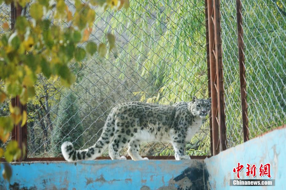 10月23日,國際雪豹日。在西寧野生動物園內,雪豹們悠然閑坐,時而張嘴打瞌睡,時而爬高上低展示“功夫”,萌態(tài)十足。圖為西寧野生動物園內,一只雪豹爬上圍墻散步。 馬銘言 攝