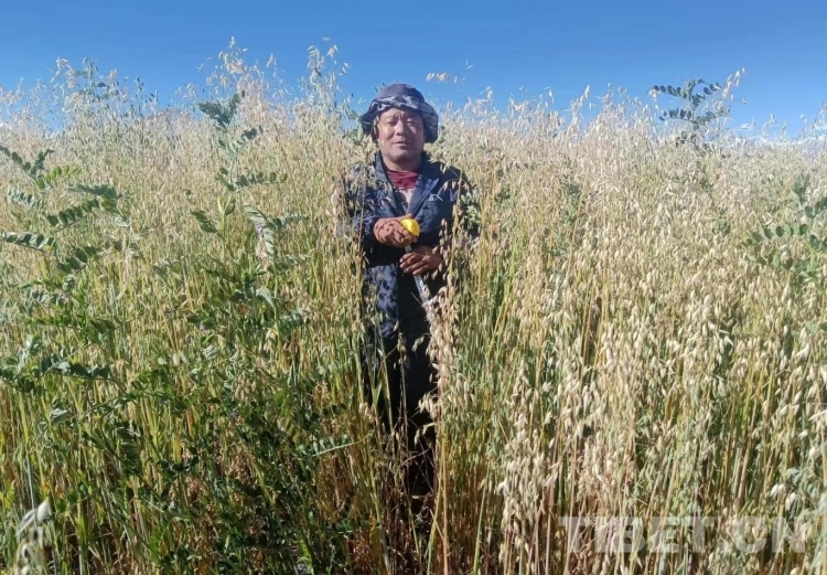 “今年,海拔3990米的林芝市工布江達(dá)縣示范點西藏蕃騰農(nóng)牧生態(tài)有限公司基地?fù)屖找荒晟潭够觳デ喔刹?80噸、夢龍燕麥種子2噸;海拔4500米的阿里地區(qū)噶爾縣示范點阿里草原站基地是貝勒2號和箭筈豌豆混播,搶收青干草畝產(chǎn)突破1噸;海拔4660米的拉薩市當(dāng)雄縣示范點格達(dá)鄉(xiāng)甲朵村基地村集體是青海444燕麥和甜燕麥混播,搶收青干草28噸;海拔3800米的日喀則市桑珠孜區(qū)示范點邏瑪奶牛場搶收青飼玉米24噸;位于拉薩市的海拔3760米的核心試驗點曲尼帕試驗基地種子擴(kuò)繁點的數(shù)據(jù)正在匯總分析……”談及今年各示范點的數(shù)據(jù),多吉頓珠如數(shù)家珍。