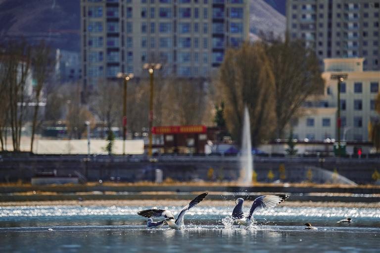 候鳥大約是拉薩入冬的標志。初冬時節(jié),拉魯濕地和拉薩河邊,到處都是從遠方飛來越冬的黃鴨、斑頭雁。隨著拉薩生態(tài)環(huán)境更加優(yōu)美,這些可愛的精靈選擇在此越冬,讓許多觀鳥愛好者心動。每天清晨天還未亮,他們就早早地守候在水邊,只為記錄下候鳥迎著第一縷朝陽翩然飛舞的景象。