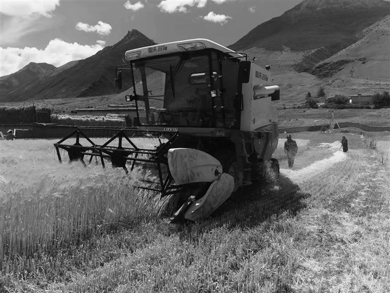 農(nóng)牧民正在收割糧食。 圖由西藏自治區(qū)農(nóng)業(yè)農(nóng)村廳提供
