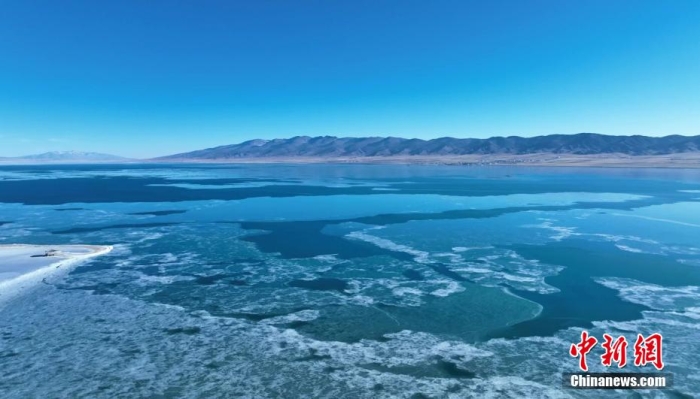 圖為青海湖已由岸邊向湖心漸次封凍。 史國成 攝