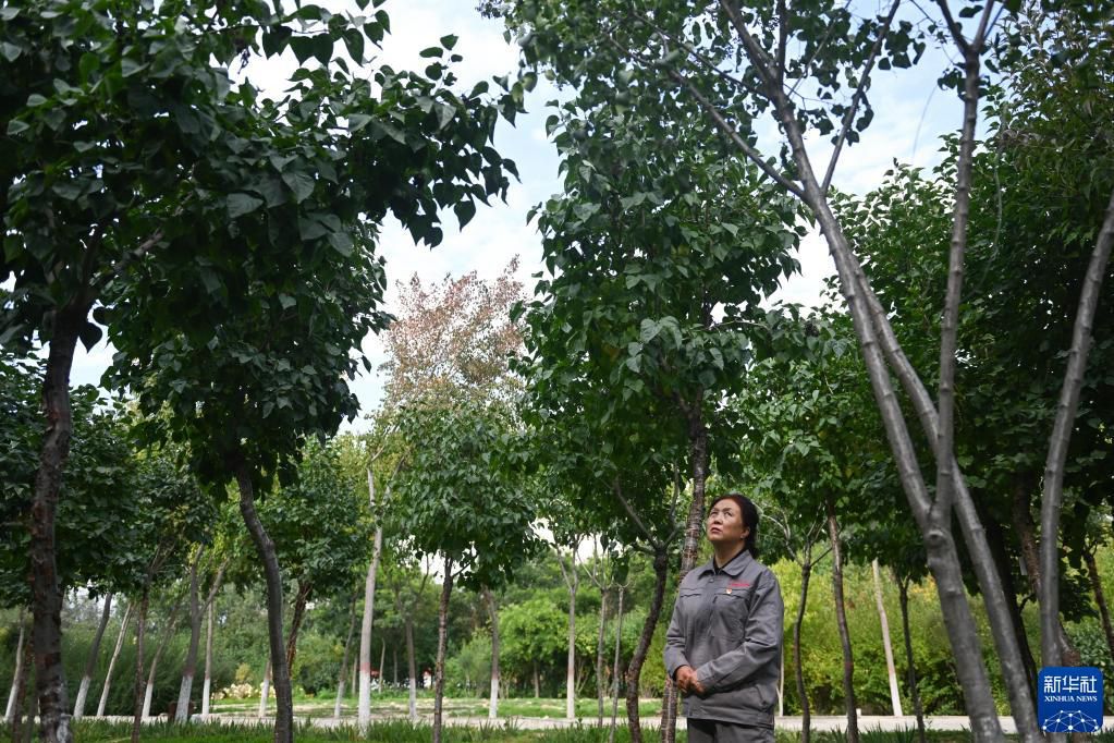 張錦梅在青海省西寧市林業(yè)科學(xué)研究所內(nèi)查看林木生長(zhǎng)情況(2022年9月14日攝)。新華社記者 張龍 攝